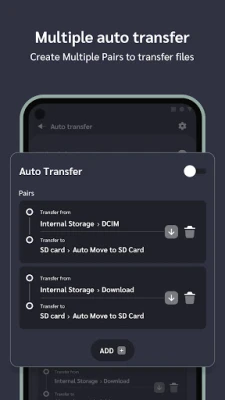 Vai pastāvīgi cīnāties ar ierobežotu tālruņa iekšējo atmiņu, kas traucē ierīces ātrdarbībai? Atklājiet risinājumu, kas atbrīvos jūsu ierīci, nodrošinot nevainojamu darbību un plašu vietu jaunām atmiņām. Šī lietotne ir neaizstājams rīks ikvienam, kurš izmanto SD karti, piedāvājot inteliģentu failu pārvaldību. Tā automātiski pārvieto attēlus, videoklipus, audio failus, dokumentus, APK un citus datus no iekšējās atmiņas uz jūsu SD karti, efektīvi novēršot vietas trūkumu. Iestatiet to vienreiz, un lietotne uzraudzīs jūsu izvēlētās mapes, automātiski pārvietojot jaunus failus fonā, pat neatverot lietotni, tādējādi nodrošinot pastāvīgi optimālu tālruņa veiktspēju.