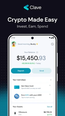 Ar Clave jūsu kriptovalūtas kļūst izmantojamas tikpat vienkārši kā skaidra nauda. Integrējiet savu Clave karti Google Pay un veiciet bezkontakta maksājumus jebkurā vietā, kur pieņem Visa, izmantojot USDC ar 1:1 kursu. Aizmirstiet par sarežģītajām sēklu frāzēm – izveidojiet savu drošo, pašpārvaldīto maku vienā mirklī, izmantojot jaunāko Passkey tehnoloģiju. Turklāt Clave sniedz iespēju ne tikai glabāt, bet arī pelnīt, piedāvājot līdz pat 10% gada ienesīgumu (APY) USDC, USDT, ETH un EURC ar vienkāršu DeFi integrāciju. Pat zaudējot ierīci, jūsu aktīvi ir drošībā, pateicoties vienkāršai konta atjaunošanai, izmantojot e-pastu vai uzticamus aizbildņus.