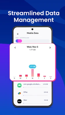 Šis datu pārvaldības risinājums ir neaizstājams visiem, kas tiecas pēc pilnīgas pārredzamības. Tas nodrošina ne tikai dinamisku ikdienas uzraudzību, bet arī personalizētus brīdinājumus, kas savlaicīgi informē par iespējamu pārmērīgu datu lietošanu straumēšanas, pārlūkošanas vai tiešsaistes spēļu laikā. Ar gudru automatizāciju un iespēju optimizēt fona datu izmantošanu, "My Data Usage Monitor" garantē efektīvu un izmaksu ziņā izdevīgu mobilo datu pārvaldību, neatkarīgi no tā, vai jums ir ierobežots vai neierobežots datu plāns. Tas palīdz samazināt datu patēriņu visā tīklā un ietaupīt gan laiku, gan naudu.