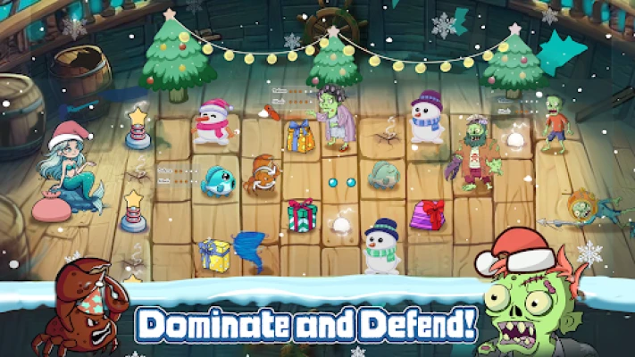 Izpētiet satriecošas zemūdens pasaules, kas rotātas ar krāšņiem koraļļu rifiem, noslēpumainām dziļjūras zonām un augstas kvalitātes, plūstošām animācijām. Svētku tematikas rotājumi piešķir papildu šarmu katrai zemūdens kaujas zonai, īpaši Ziemassvētku laikā. Pilnveidojiet savas jūras radības ar jaudīgiem uzlabojumiem, palielinot to bojājumus, ātrumu un īpašās spējas, lai stātos pretī pat visstiprākajiem zombiju viļņiem. Piedalieties arī ikdienas izaicinājumos un misijās, lai nopelnītu vērtīgas balvas, tostarp monētas un pastiprinājumus, kas vēl vairāk stiprinās jūsu aizsardzību.