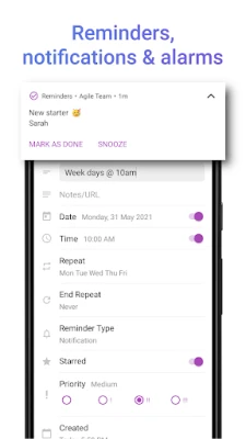Reminders piedāvā plašu funkciju klāstu, kas palīdzēs jums sasniegt savus mērķus un efektīvi pārvaldīt ikdienu. Sekojiet līdzi savam grafikam ar intuitīvu kalendāra skatu, kas acumirklī parāda visus aktuālos uzdevumus un notikumus. Izmantojiet pielāgojamus logrīkus, lai ātri piekļūtu uzdevumu sarakstiem, kalendāram vai piezīmēm tieši no sākuma ekrāna. Viedie paziņojumi un modinātāji nodrošina, ka nekad neaizmirsīsiet svarīgu tikšanos vai veicamo darbu, savukārt mērķu izsekošana un ieradumu veidošana palīdz uzturēt fokusu un virzīties uz priekšu. Filtrējiet uzdevumus pēc prioritātes vai termiņa, lai vienmēr zinātu, kas ir aktuālākais.
