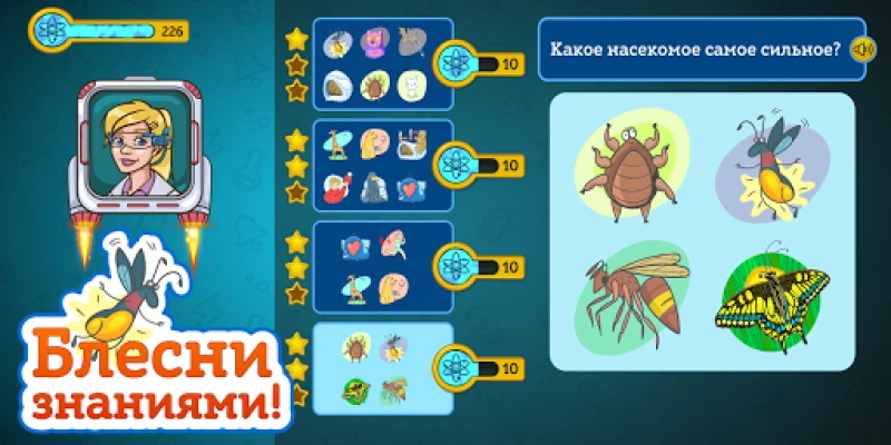 Ienirstiet 23 daudzveidīgās tēmās, kas aptver visu no dzīvnieku valsts noslēpumiem un augu brīnumiem līdz minerālu veidošanās procesiem, planētu un zvaigžņu ceļojumiem, un pat Kamčatkas vulkānu varenībai. "ШКОЛА ПРОФЕССОРА ДРОЗДОВА" piedāvā vairāk nekā 450 unikālas faktu kartītes, kurās profesors DrozdoVS personīgi ierunā aizraujošas detaļas. Uzziniet, kāpēc spīdvaboles spīd, kur rodas kristāli, kā sikspārņi navigē tumsā vai kā dzied sniegpārslas. Zināšanu nostiprināšanai ir pieejami aptuveni 430 interaktīvi testi, ko uzrauga profesora palīdze IRA – Intelekts, kas Attīstās Autonomi. IRA atbalstīs jūs mācību procesā, sniedzot norādes un palīdzot sasniegt augstāko vērtējumu bez jebkāda stresa.