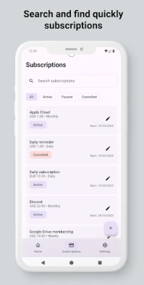 "Subscription Renewal Tracker" izceļas ar modernu un intuitīvu Material 3 dizainu, kas nodrošina patīkamu lietošanas pieredzi ar tumšajām un gaišajām tēmām. Neatkarīgi no ierīces, lietotne pielāgojas nevainojami, piedāvājot plūstošas animācijas un izcilu veiktspēju. Meklējiet un filtrējiet abonementus pēc statusa (aktīvs, apturēts, atcelts), lai ātri atrastu nepieciešamo informāciju. Jūsu dati tiek glabāti lokāli un ir pilnībā jūsu kontrolē, ar iespēju veikt Google Drive dublējumus vai eksportēt informāciju dažādos formātos. Aizmirstiet par finansiālu stresu un nepatīkamiem pārsteigumiem – pārņemiet kontroli pār saviem abonementiem jau šodien ar "Subscription Renewal Tracker".