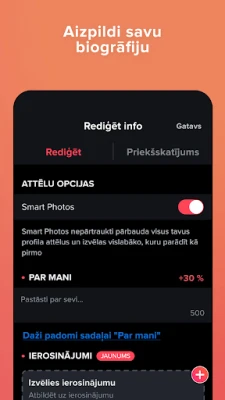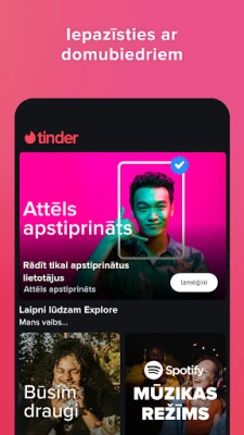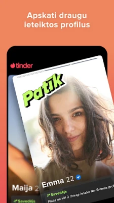Tinder aicina ikvienu atklāt sevi un veidot patiesas saiknes, neatkarīgi no personīgajām preferencēm. Izsaki savas intereses, izpēti potenciālās saderības un uzsāc aizraujošas sarunas, kas var pāraugt neaizmirstamos mirkļos. Mēs rūpējamies par autentiskumu – ar apstiprinātiem profilu attēliem, lai pirmais iespaids būtu vienmēr patiess. Pārbaudi savstarpējo ķīmiju ar drošu videozvanu funkciju, iepazīstoties ar jauniem cilvēkiem no mājām. Un ja ceļojuma vējš tevi sauc, Tinder ir tavs pavadonis, lai satiktu vietējos un veidotu jaunus draugus jebkurā pasaules malā, no Parīzes līdz Tokijai.